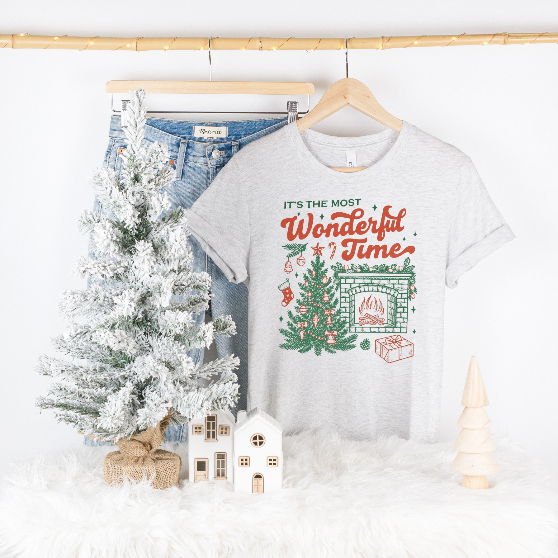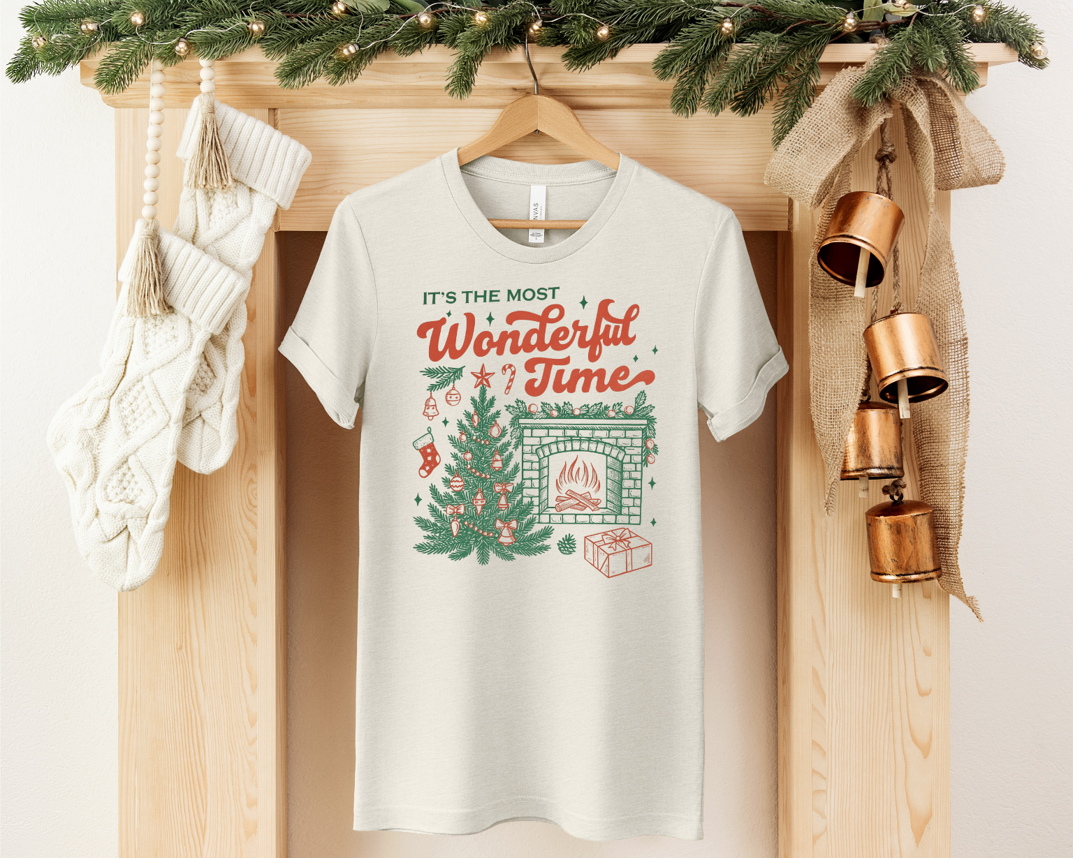 IT'S THE MOST WONDERFUL TIME CHRISTMAS TEE on a sand, heathered gray, cream or white colored Bella + Canvas Unisex Tee.