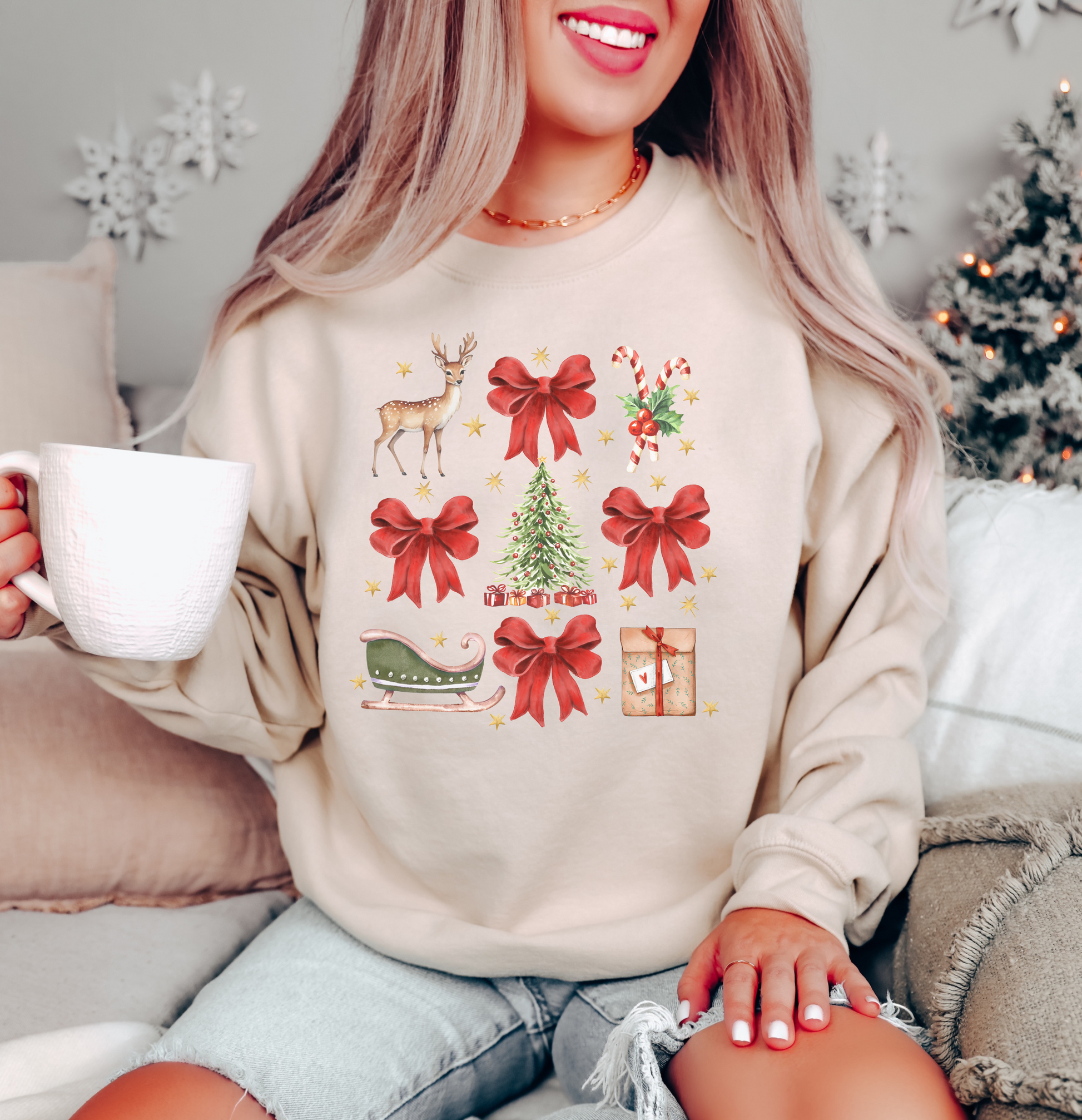 VINTAGE RETRO BOW CHRISTMAS CREWNECK SWEATSHIRT